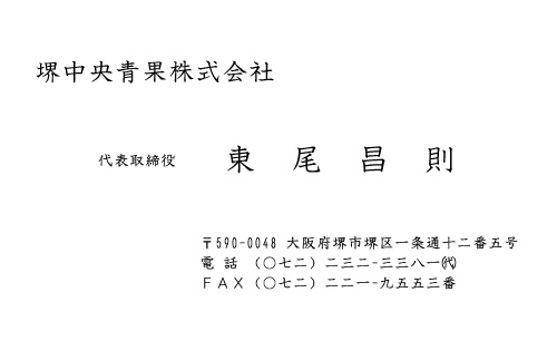 堺支部の方で名刺作成を希望される場合は下記の申し込みフォームより直接近畿大学校友会本部事務局までお申し込み下さい。書式は一定です。
