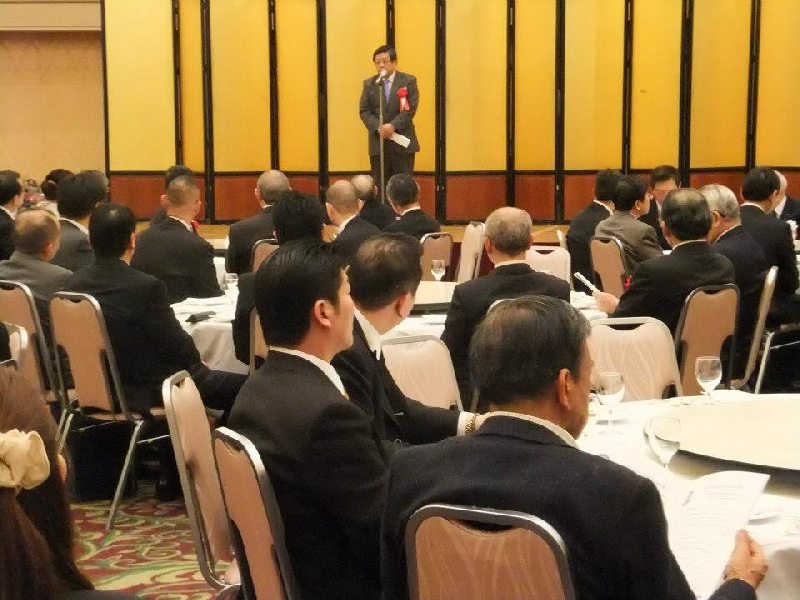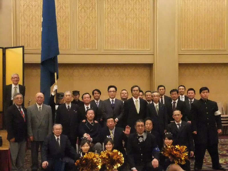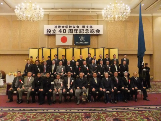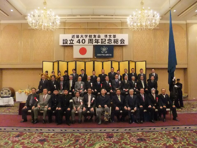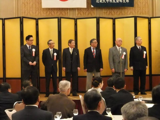 近畿大学校友会堺支部設立40周年記念総会平成25年3月2日 ホテル アゴーラリージェンシー堺 歴代支部長 (左から、西野勝弘氏・津田和仁氏・片山徳文氏・寺田武男氏・平野耕平氏・増田保弘氏)