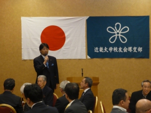 堺支部の東尾支部長の挨拶のあと、西野校友会本部幹事長より近畿大学の近況報告を交えたご挨拶を賜り、総会議案を審議致しました。